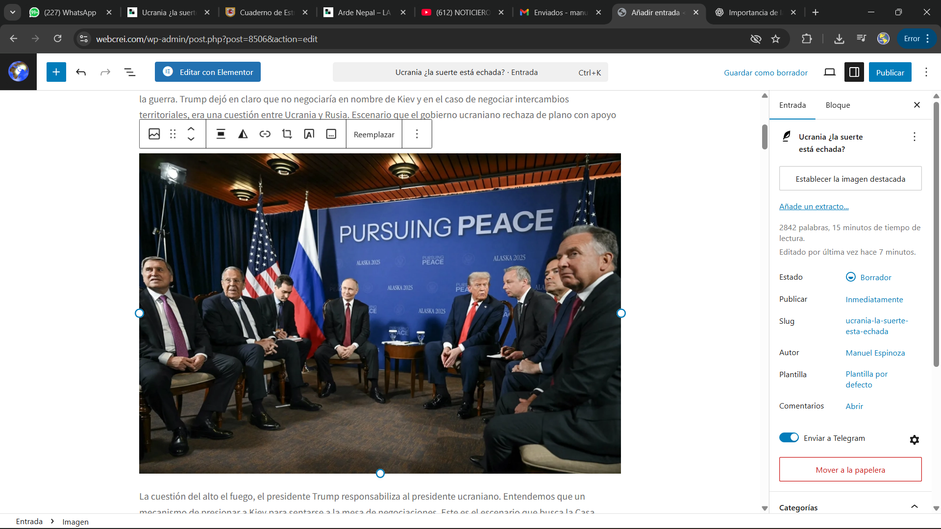El mundo tuvo sus ojos puestos en la ciudad de Anchorage, en el estado de Alaska, Estados Unidos. El presidente Donald Trump de Estados Unidos y su par ruso, Vladimir Putin, se sentaron a dialogar sobre la guerra de Ucrania. Los grandes ausentes de este proceso: Ucrania y la Unión Europea. Desde el punto de vista simbólico, el Kremlin, obtuvo una victoria… que Washington dialogará de igual a igual con Rusia.